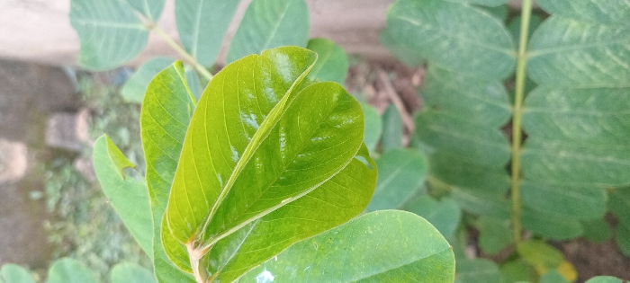 A close-up vertical shot captures a cluster of vibrant green plant leaves in the city of Unknown, Unknown