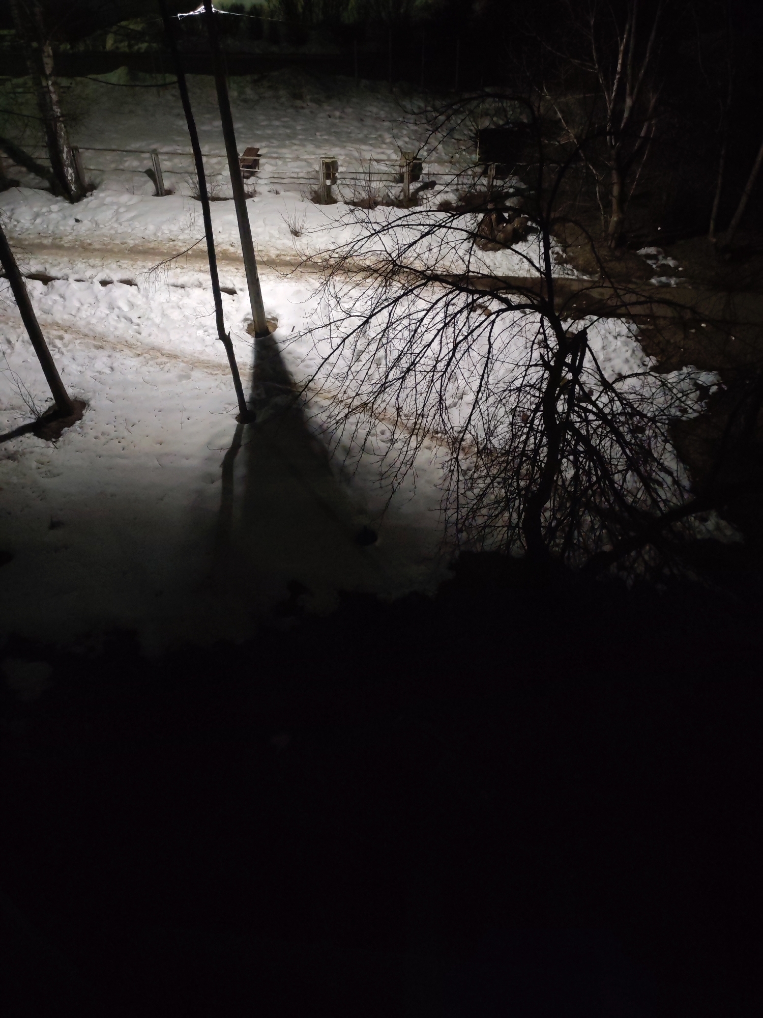 - "A nighttime scene in Chaikovsky, Russia, reveals a snow-covered area illuminated by a streetlight, casting long shadows of utility poles and a leafless tree onto the ground" by FM-N5WuU2, licensed under CC BY 4.0