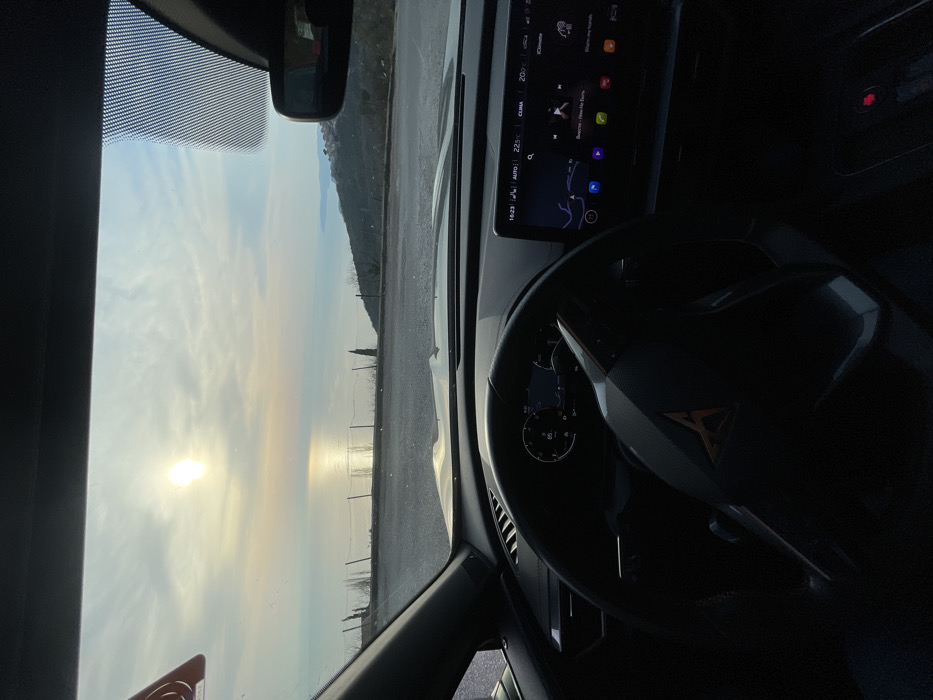 - "The image captures a forward-facing view from the interior of a stationary Cupra vehicle, identifiable by its steering wheel emblem, situated at an elevated coastal overlook in Rađenovići, Montenegro" by FM-oln9s2, licensed under CC BY 4.0