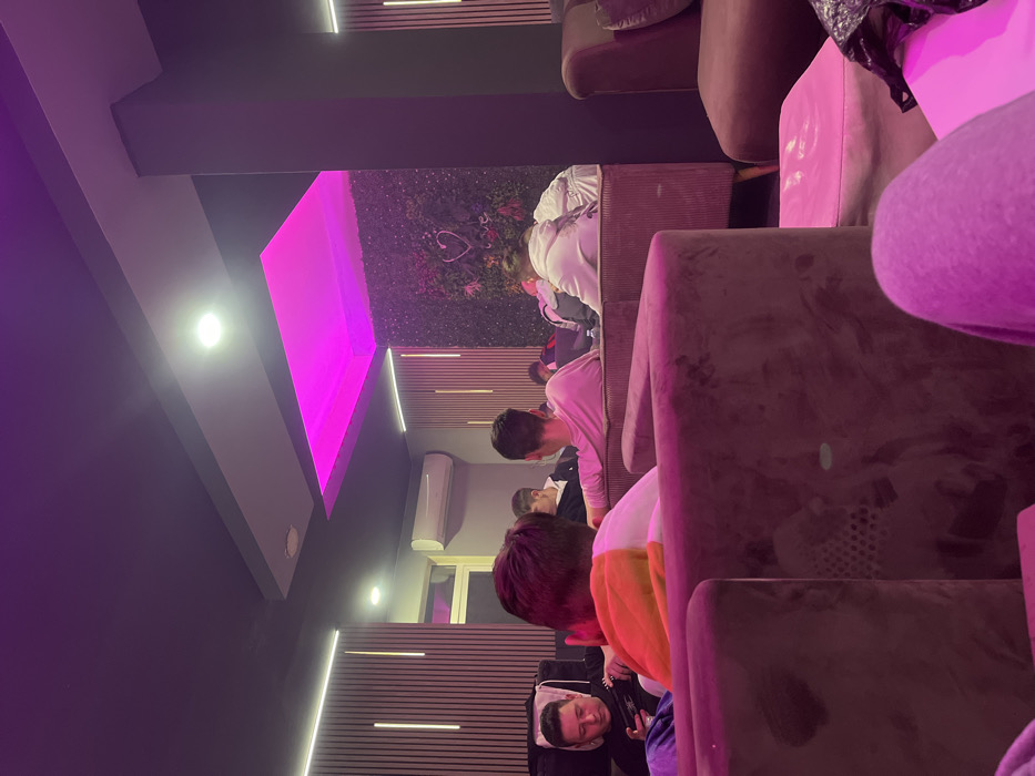 - "The scene depicts an interior view of a lounge or cafe in Skrebatno, Bulgaria, characterized by atmospheric purple and magenta lighting" by FM-wVU982, licensed under CC BY 4.0