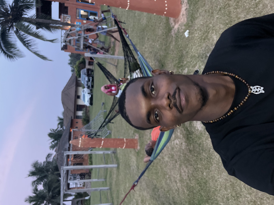 - "A male subject is depicted in a selfie-style photograph taken outdoors in Kasoa, Ghana, during twilight hours, evidenced by the light purple and blue gradient sky" by FM-w5W832, licensed under CC BY 4.0