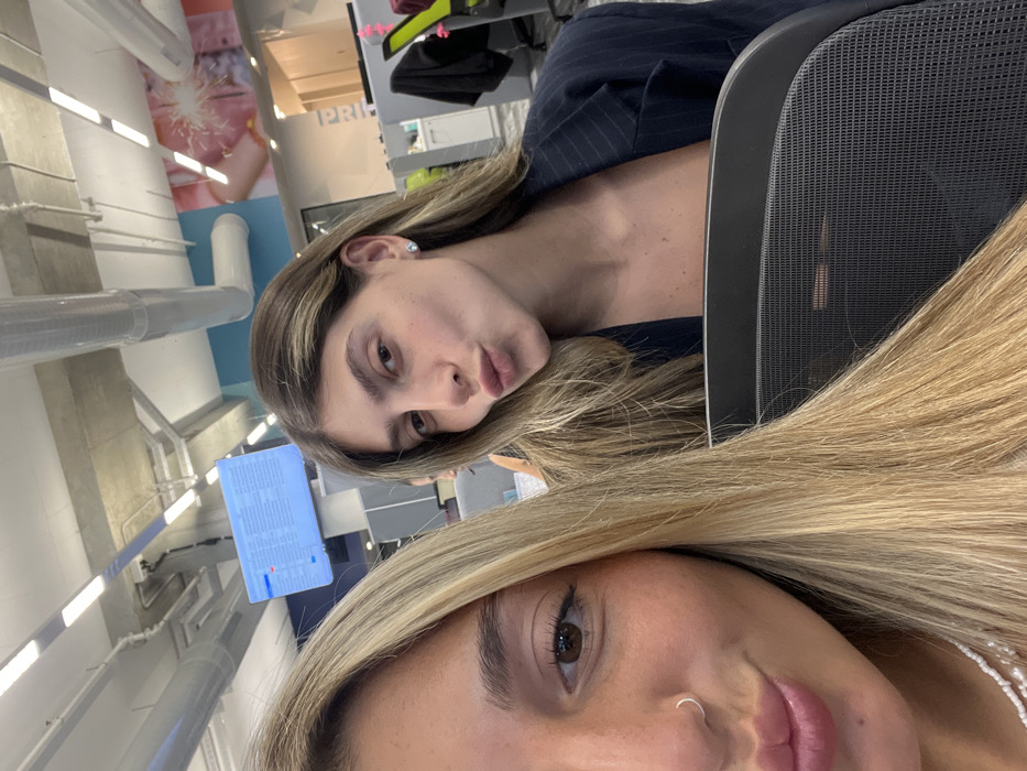 - "This is a close-up selfie photograph taken by a woman, whose right side of her face and blonde hair are visible on the left, capturing herself and another woman in an open-plan office in Bnei Brak, Israel" by FM-iEctz2, licensed under CC BY 4.0