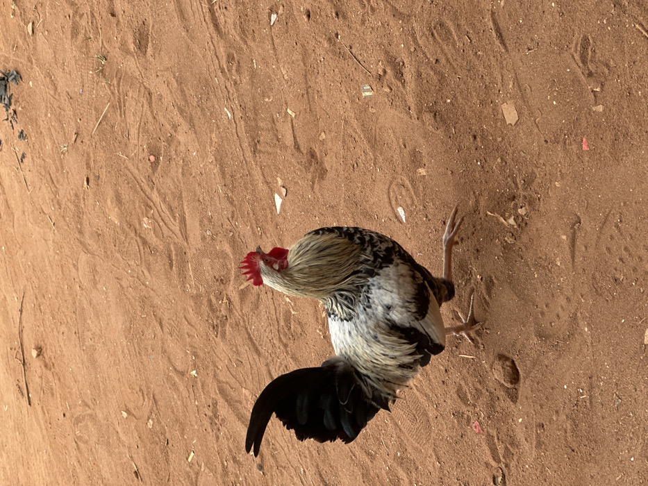 - "This image depicts a single adult rooster walking on reddish-brown dirt or sand in Nnobi, Nigeria" by FM-hlFko1, licensed under CC BY 4.0