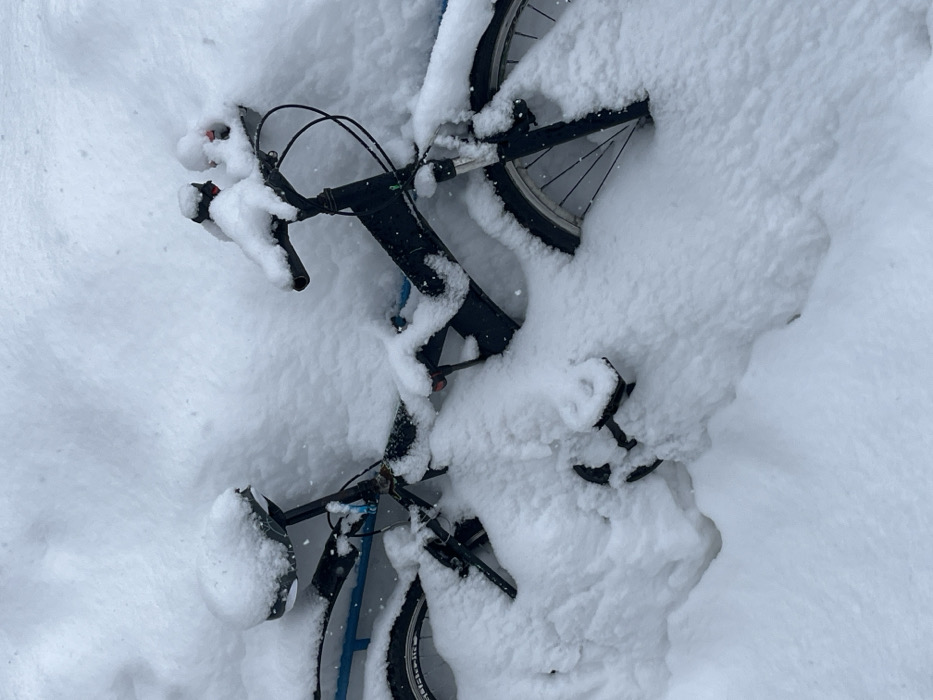 - "This image depicts a black bicycle almost entirely buried under a thick layer of fresh, undisturbed white snow" by FM-Y9E2H2, licensed under CC BY 4.0