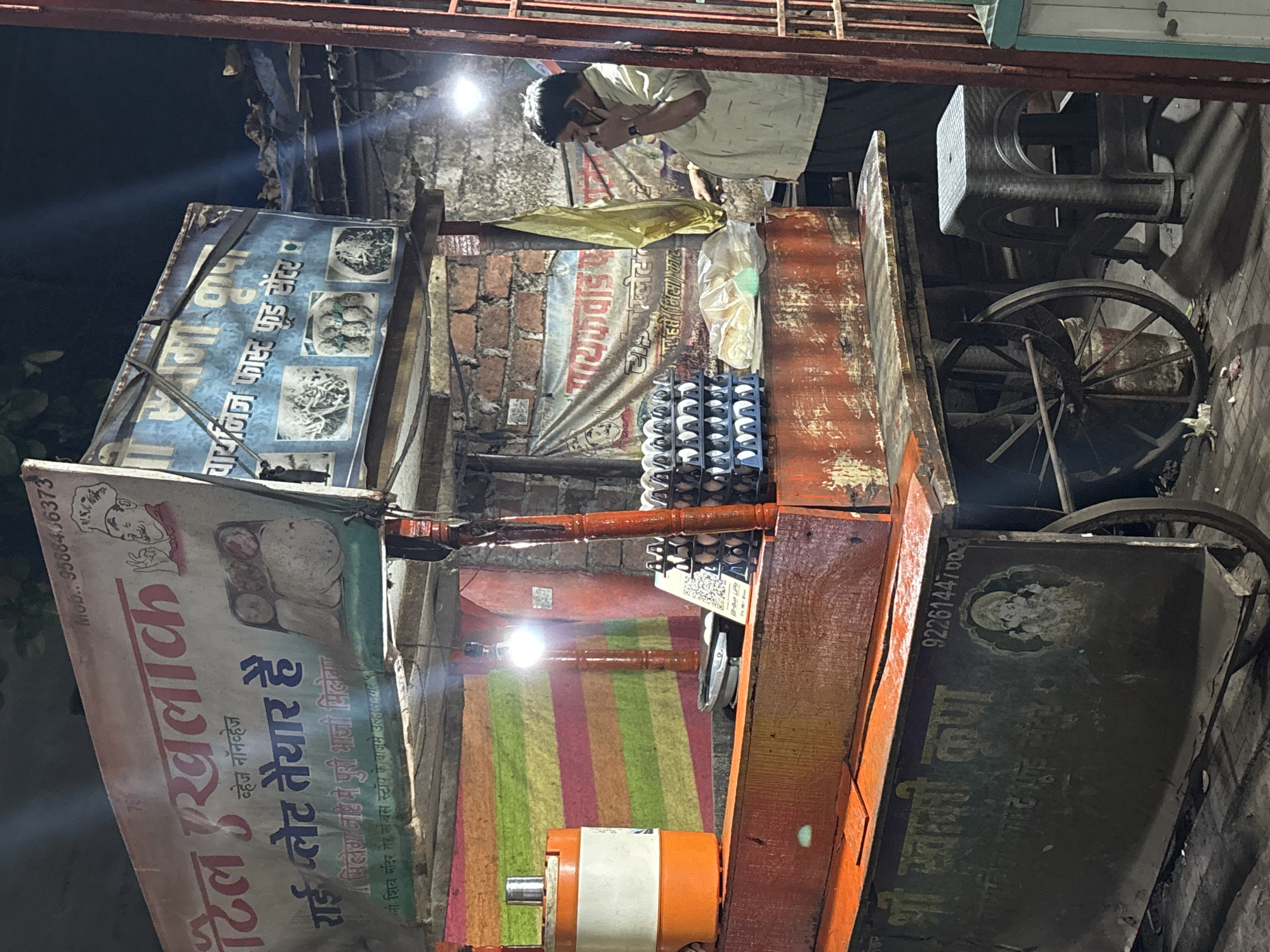 This nighttime image depicts a street food stall located on Shiv Mandir Road, to the left of the bus stop in Ulhasnagar, India