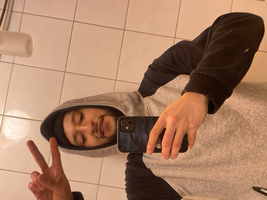 - "A person in a grey and black hooded sweatshirt poses for a selfie in a bathroom" by FM-WEULP2, licensed under CC BY 4.0
