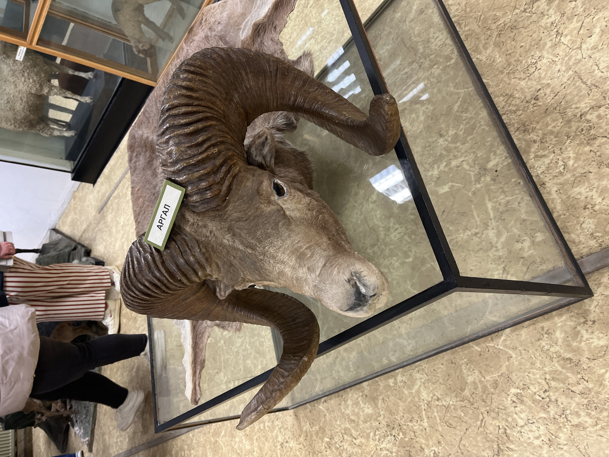 - "taxidermied Argali sheep head encased in a glass display case with a black frame" by FM-NEsdl2, licensed under CC BY 4.0