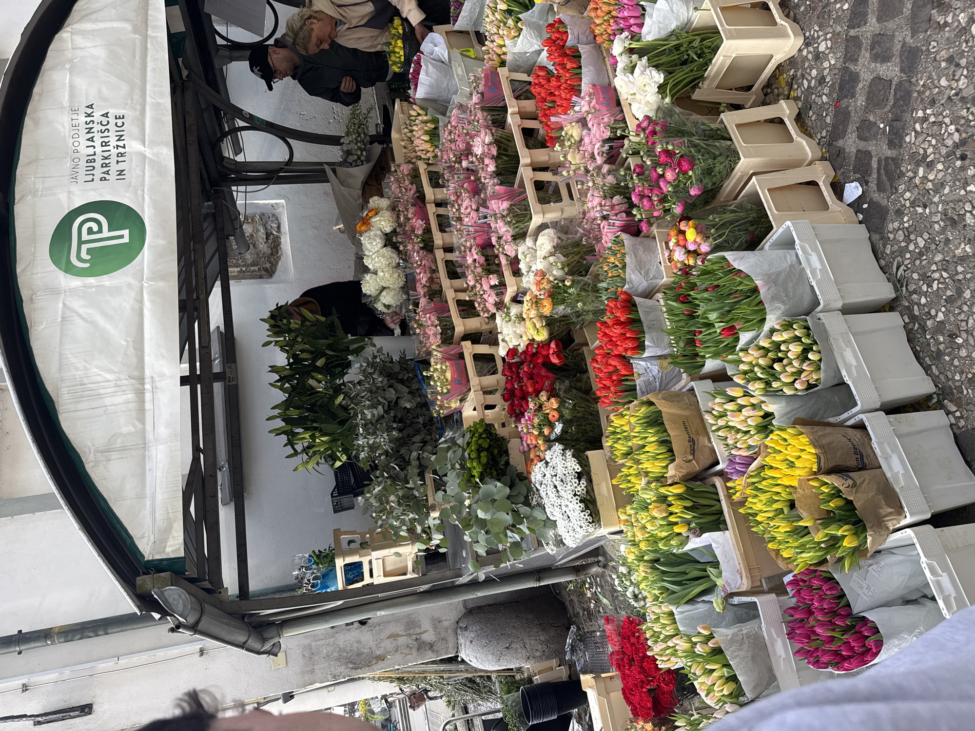 - "An outdoor flower market stall is depicted in Ljubljana, Slovenia, identified by the white canopy bearing the green logo and text 'JAVNO PODJETJE LJUBLJANSKA PARKIRIŠČA IN TRŽNICE'" by FM-kcmAp2, licensed under CC BY 4.0
