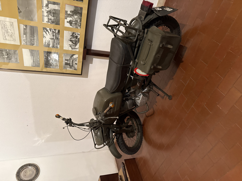 - "A military-green motorcycle is centrally displayed indoors at a location in Praia do Ribatejo, Portugal" by FM-k1rMm1, licensed under CC BY 4.0