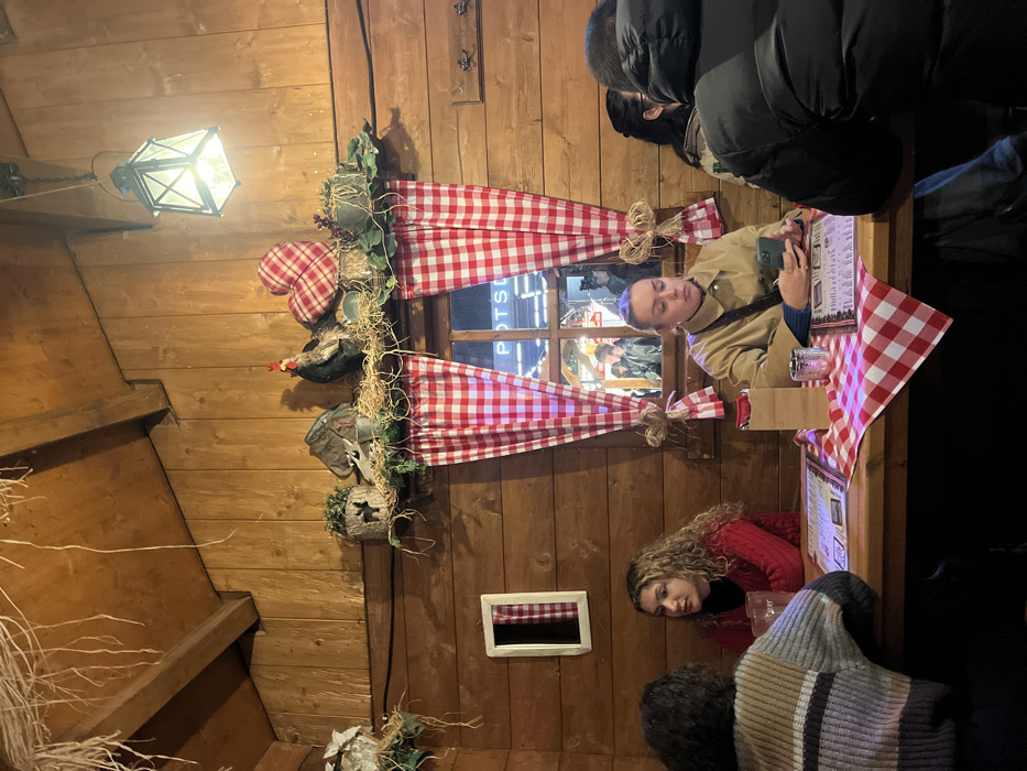 - "The image depicts the interior of a rustic, wood-paneled establishment at the Potsdamer Platz Christmas Market in Berlin, Germany" by FM-mrTCs1, licensed under CC BY 4.0