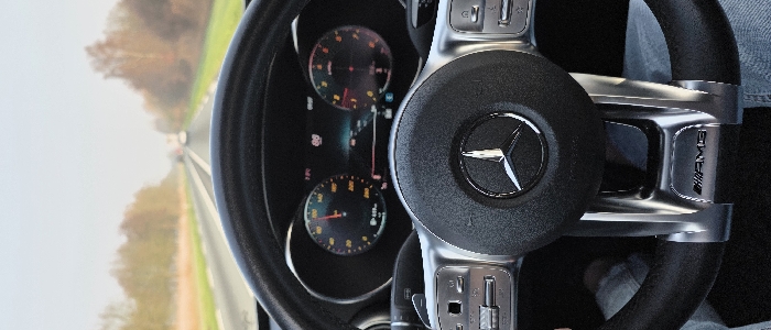- "The image presents a first-person perspective from the driver's seat of a moving Mercedes-AMG vehicle" by FM-4UEQa2, licensed under CC BY 4.0