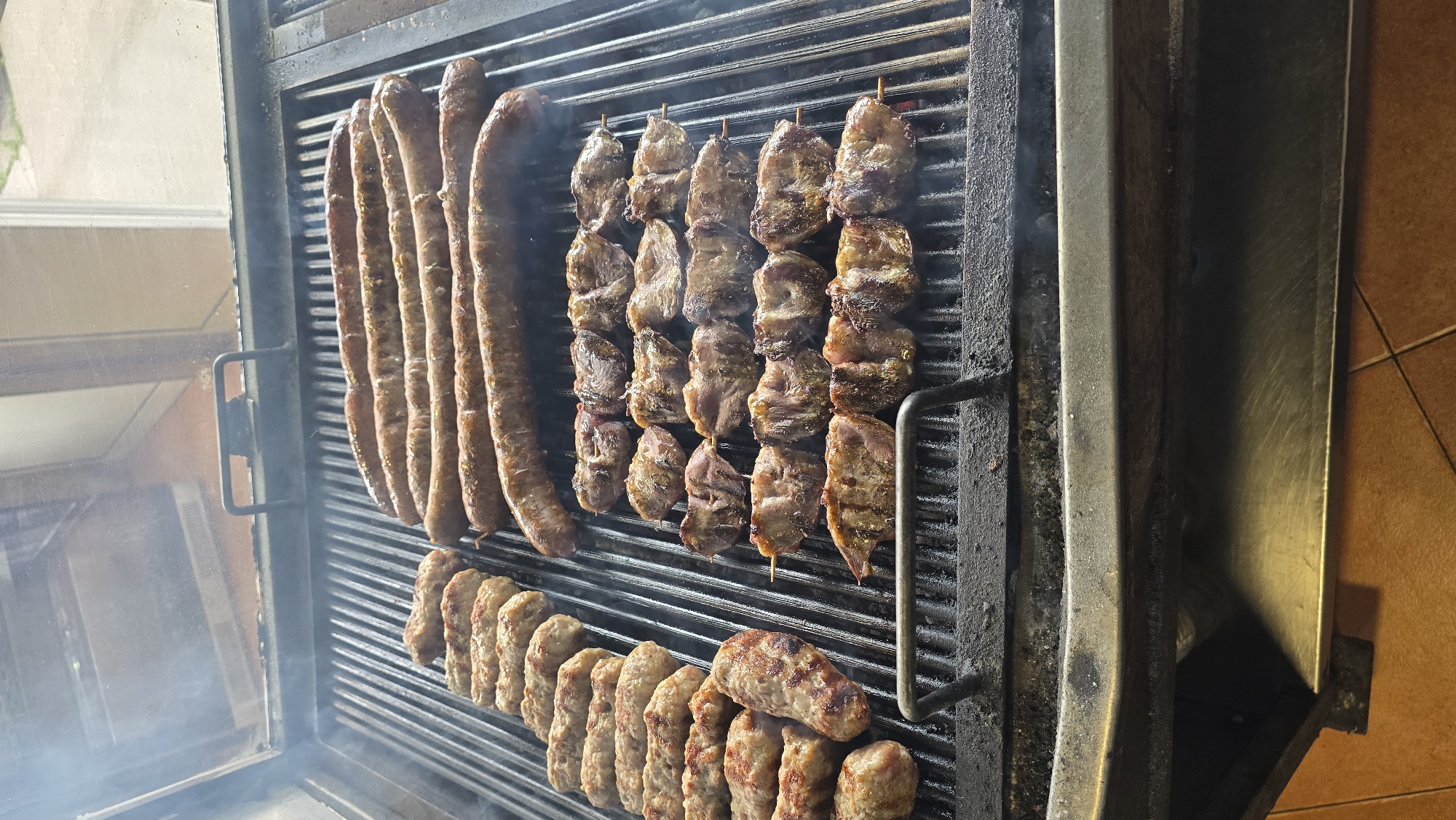 - "The image displays a commercial grill, operating with smoke visible, laden with various cooking meats" by FM-SeWPA2, licensed under CC BY 4.0