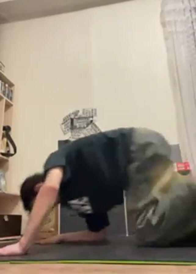 A young, white man is doing a headstand