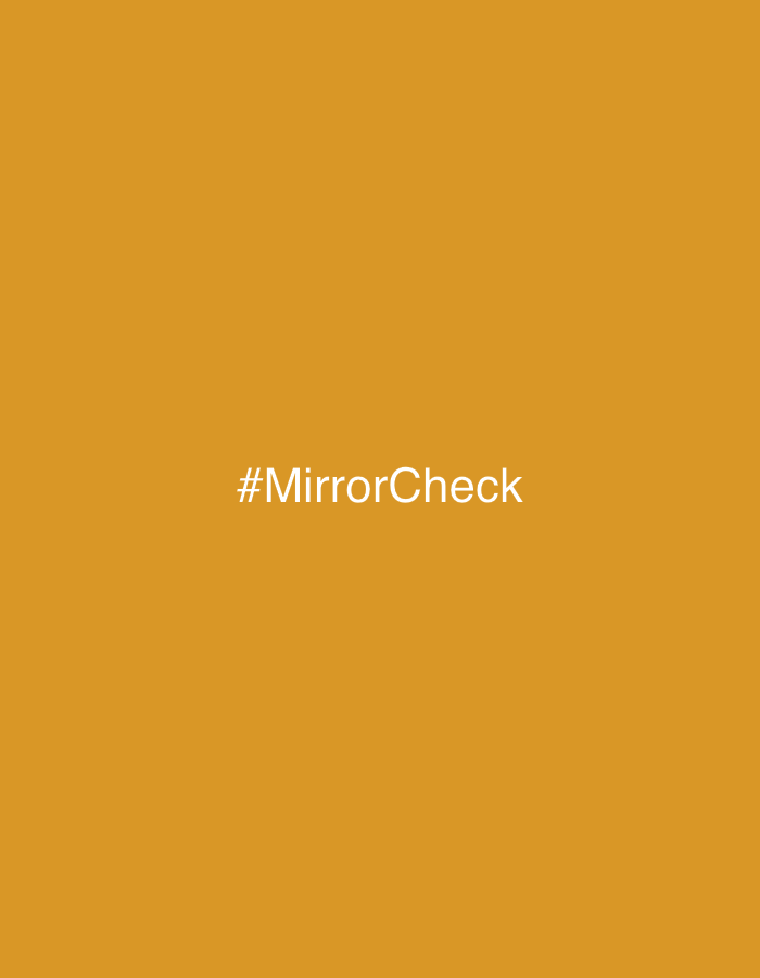 The image displays a uniform, solid orange background. Centered on this background is the white text "#MirrorCheck" rendered in a sans-serif typeface. No people, subjects, physical objects, or environmental features are depicted. The scene is a purely digital graphic. The image contains no visual information, landmarks, or contextual cues to identify a specific physical location, including any within the city of Dnipro, Ukraine.