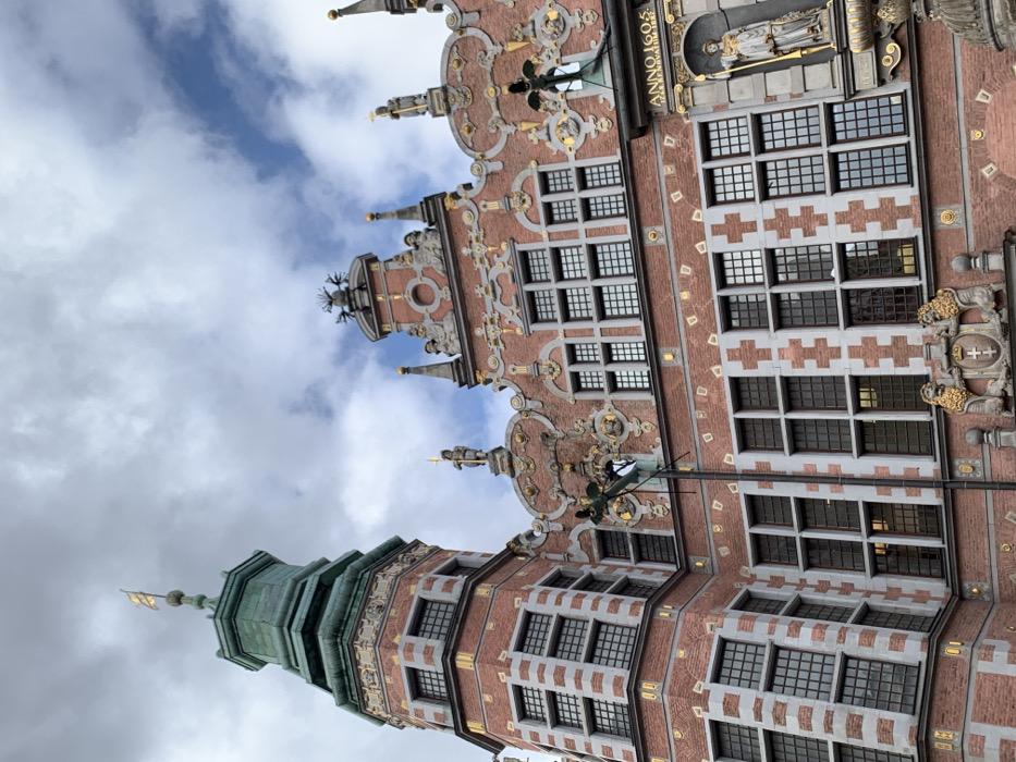- "The image displays an upward-angled view of the upper sections of the Main Town Hall (Ratusz Głównego Miasta) in Długi Targ (Long Market), Gdańsk, Poland, under a partly cloudy sky" by FM-N643B3, licensed under CC BY 4.0