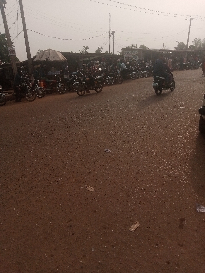 - "The image depicts a busy street scene within the city of Moniya, Nigeria, characterized by a brownish, possibly unpaved or laterite road surface littered with small pieces of debris" by FM-ek8BD3, licensed under CC BY 4.0