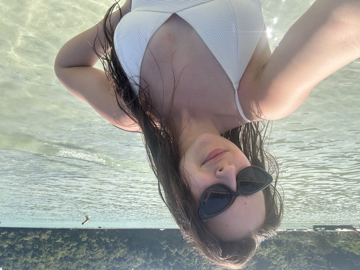 - "A female subject is depicted in a close-up selfie photograph, standing in shallow, clear, light green-blue water" by FM-F95Ut2, licensed under CC BY 4.0