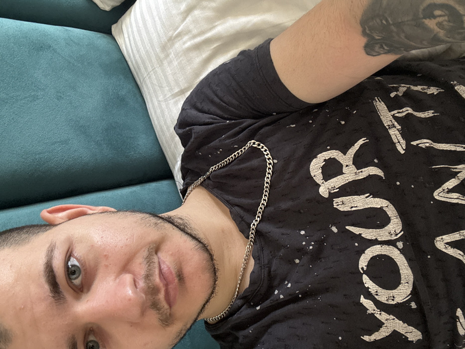 A light-skinned male individual is depicted in a close-up, chest-up shot