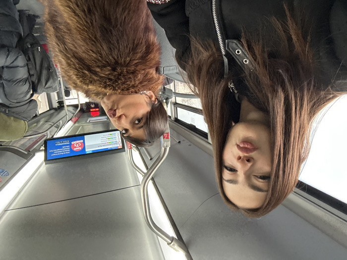 - "The image depicts two adult females posing for a selfie inside a public transport vehicle, identified as a bus or tram, in Lampertheim, France" by FM-vVQbp1, licensed under CC BY 4.0