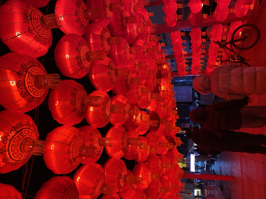 - "The image depicts an outdoor nighttime scene in Jinzhou, China, characterized by an extensive overhead canopy of illuminated red Chinese lanterns" by FM-7sf2h2, licensed under CC BY 4.0