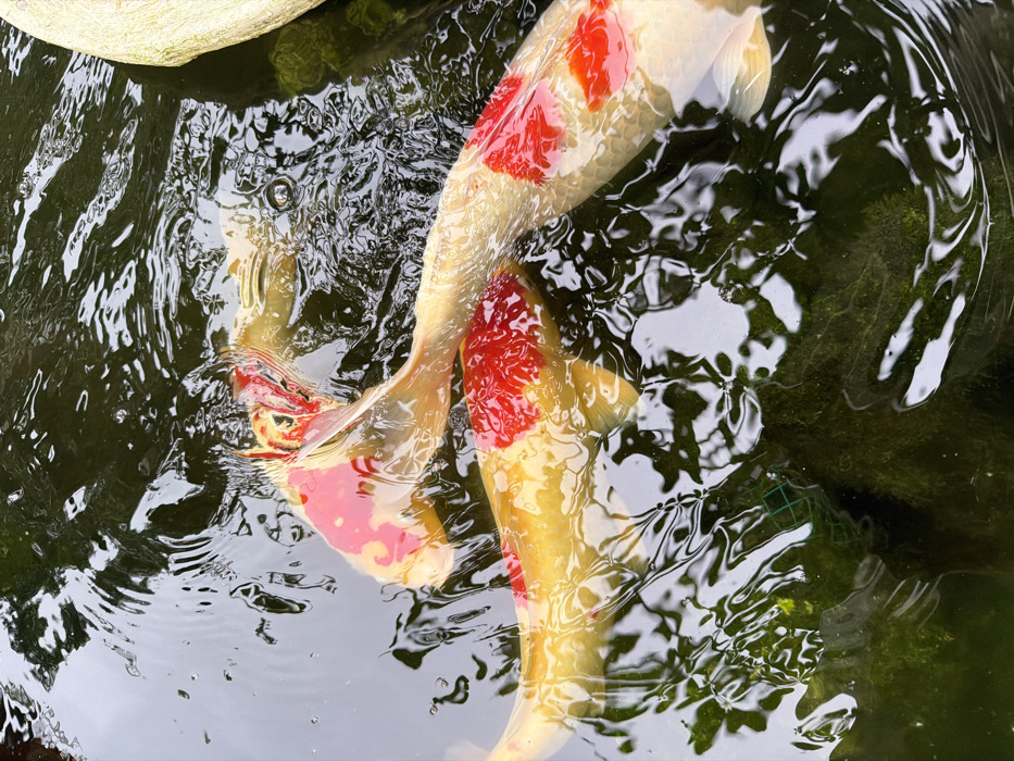 - "Two koi fish with red and white markings swim in a pond" by FM-Zt4kJ2, licensed under CC BY 4.0