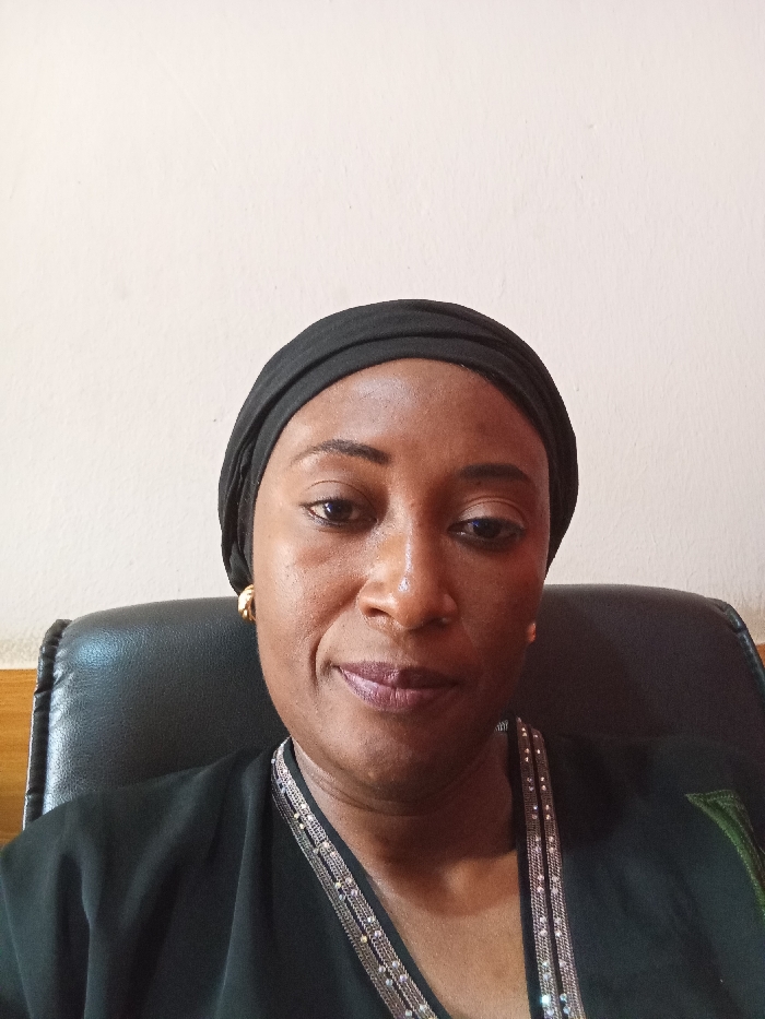 An adult female, with a medium-dark complexion, is depicted from the chest up, seated indoors in Kaduna, Nigeria