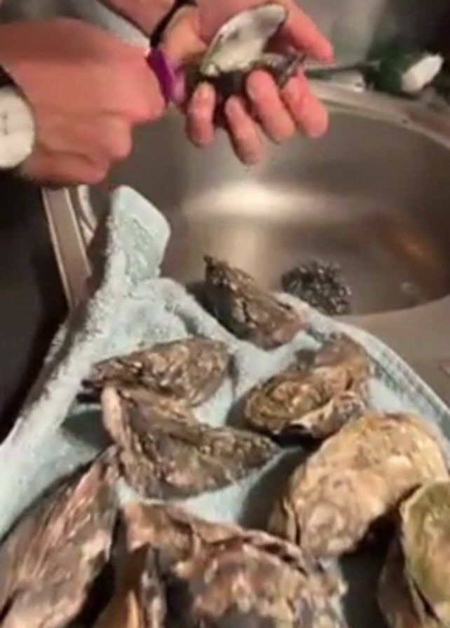 Here's a brief description of the video: The video shows a person in a kitchen cleaning oysters