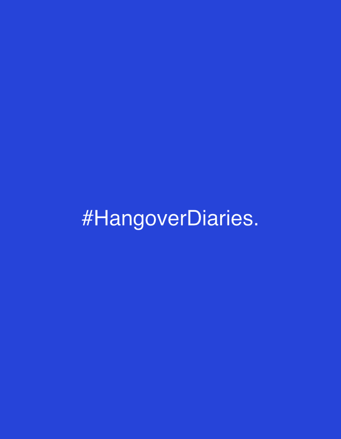 The image is a solid blue background with the text "#HangoverDiaries