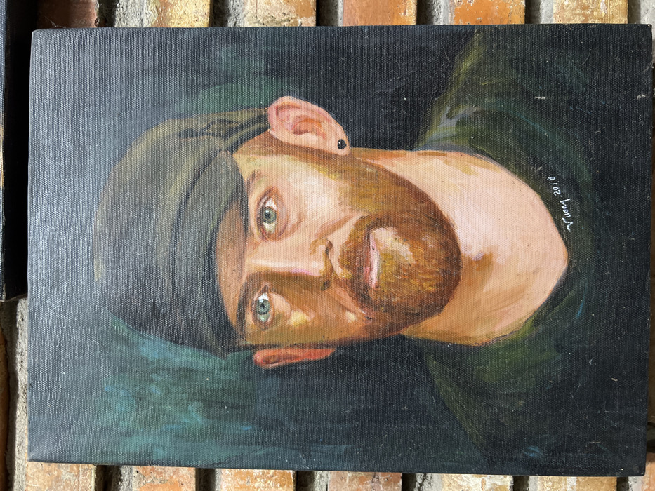 - "The image displays an oil painting on canvas, vertically oriented and positioned against a reddish-brown brick wall, in Nha Trang, Vietnam" by FM-gZMgt2, licensed under CC BY 4.0