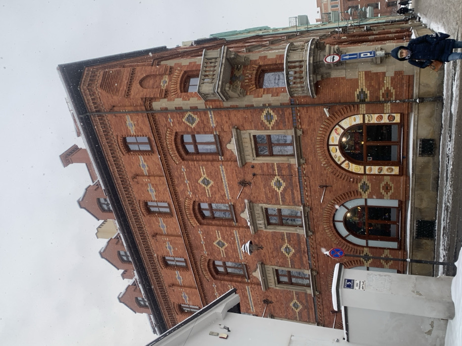 - "The scene depicts a street corner at Ulica Meiselsa 5 in the Kazimierz district of Krakow, Poland, during light snowfall" by FM-BI1Cp2, licensed under CC BY 4.0