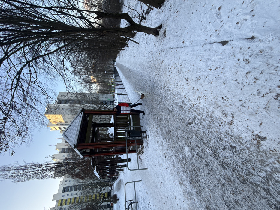 - "The image depicts a snow-covered residential park area in Berlin, Germany, under a clear blue winter sky with low-angle sunlight" by FM-mOqiA2, licensed under CC BY 4.0