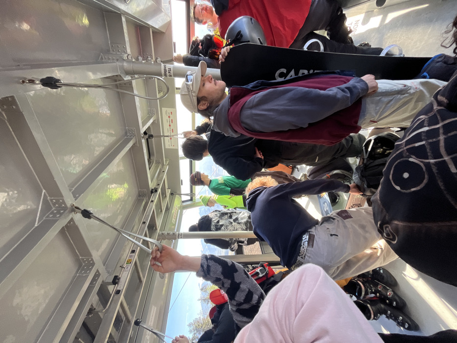 - "The image displays the interior of a cable car cabin in Schwendau, Austria, occupied by at least seven individuals equipped for winter sports" by FM-SiGDg2, licensed under CC BY 4.0