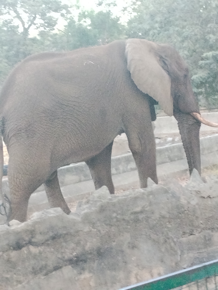 - "An African elephant, distinguished by its large ears and grey, wrinkled hide, stands within an enclosure in the city of Gandu Albasa, Nigeria" by FM-u99df1, licensed under CC BY 4.0