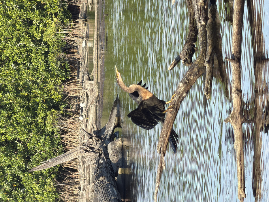 - "An Anhinga bird spreads its wings as it perches on a branch above the water" by FM-4tJwl2, licensed under CC BY 4.0
