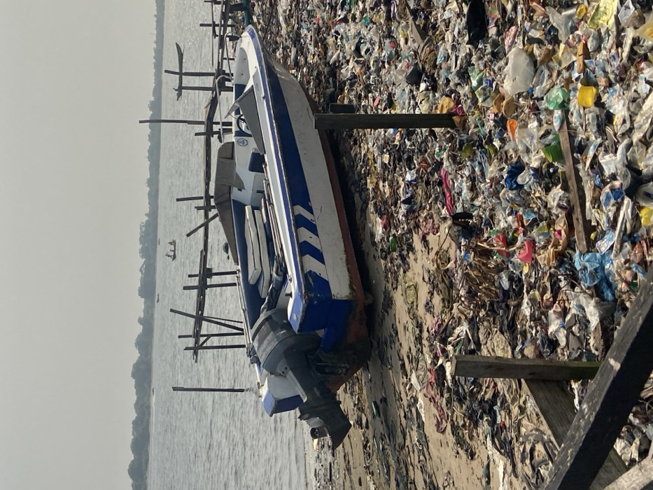 - "A blue and white boat rests on a trash-strewn beach" by FM-Ryd1w1, licensed under CC BY 4.0
