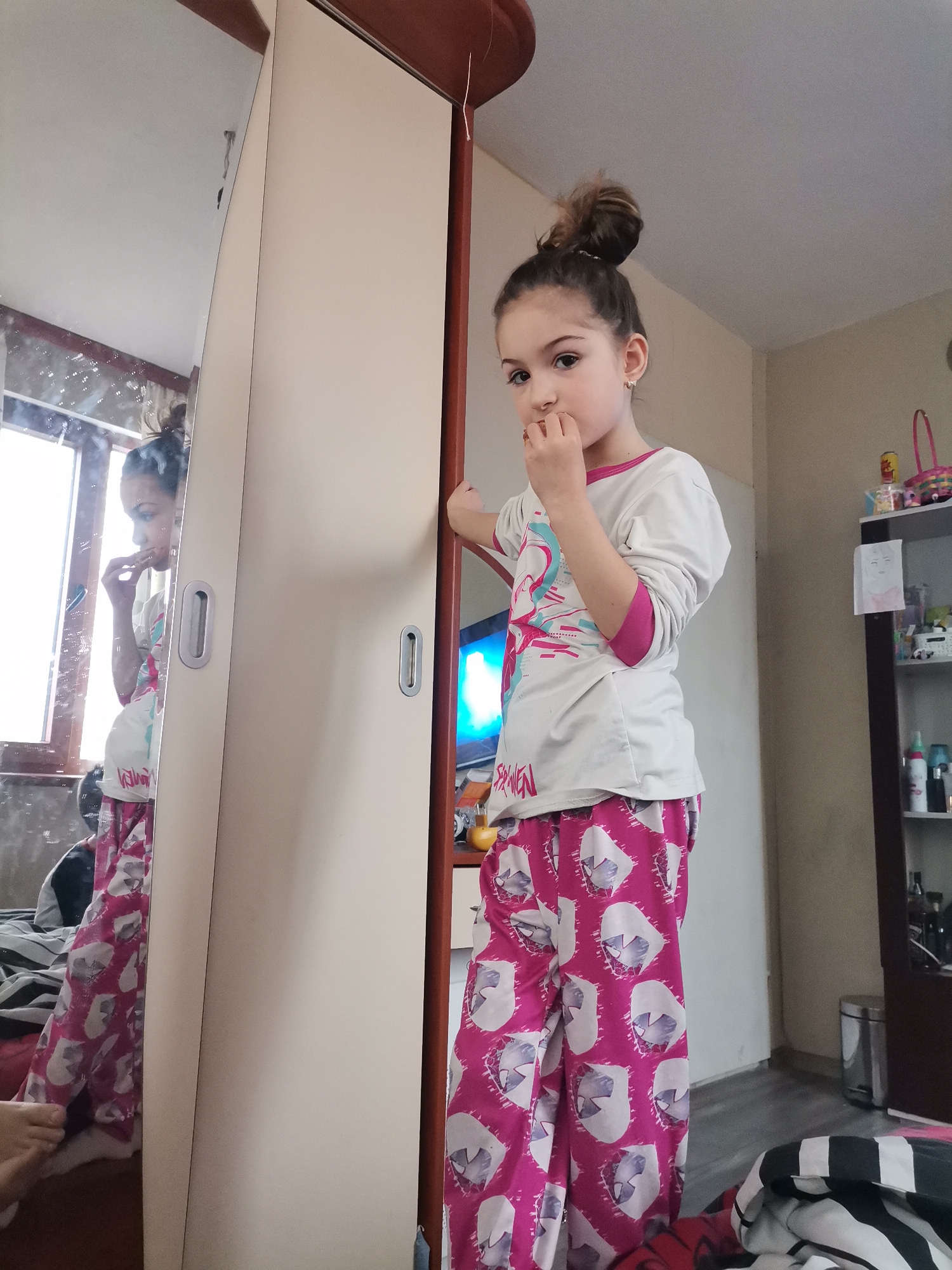 The image depicts a young girl inside a room in Obrochishte, Bulgaria