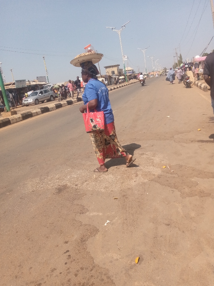 The image displays an outdoor street scene in Kafanchan B, Nigeria, under clear daylight