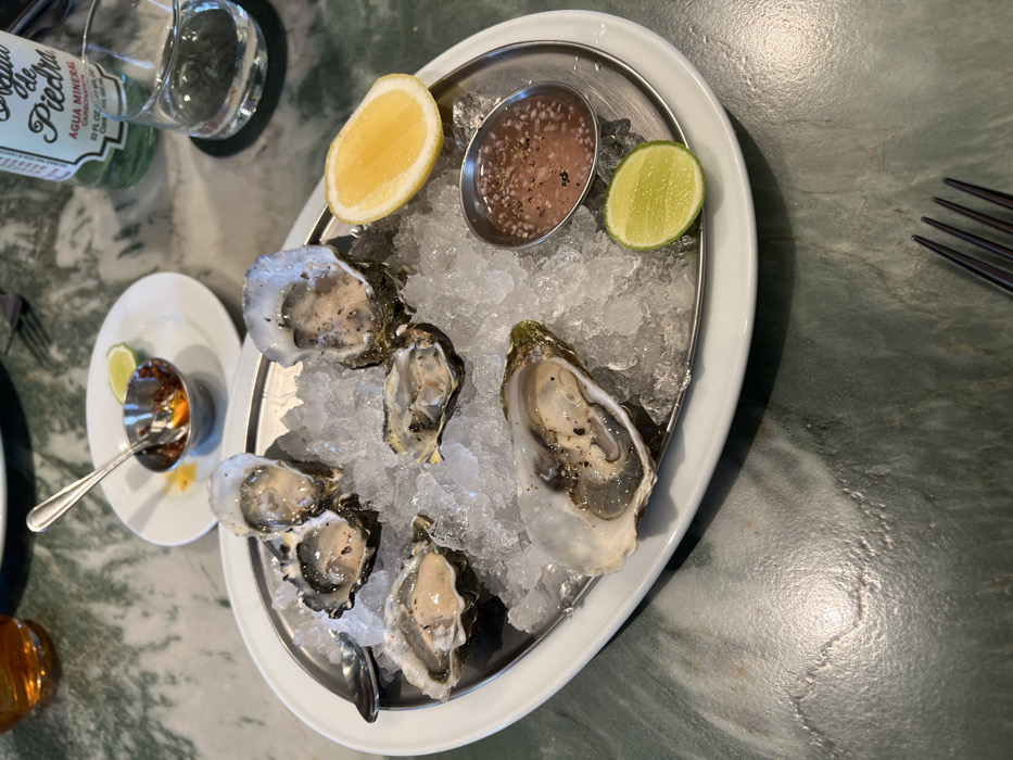 - "A platter of fresh oysters served on a bed of crushed ice is presented with a wedge of lemon and a lime slice" by FM-fGII93, licensed under CC BY 4.0