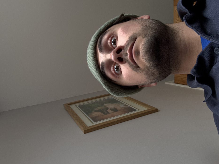 - "A low-angle, close-up photograph captures a male subject indoors" by FM-klewc2, licensed under CC BY 4.0