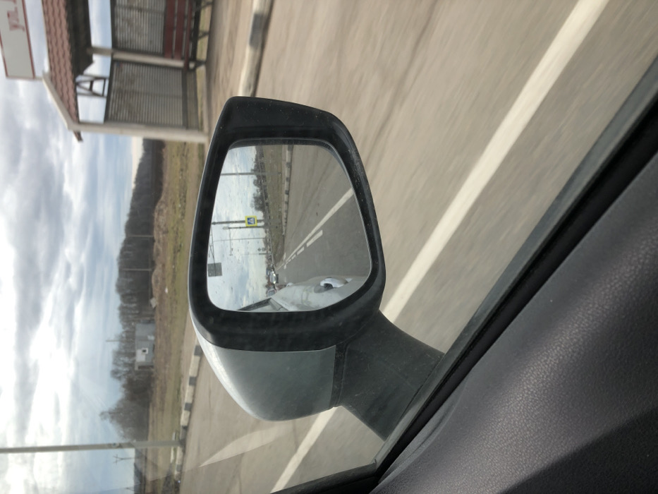 - "The image depicts an exterior view from the passenger side of a moving vehicle in Starokorsunskaya, Russia, featuring a prominent, dusty black side mirror" by FM-kQyTu2, licensed under CC BY 4.0