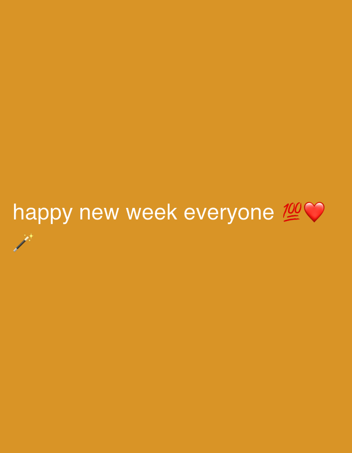 The image displays a digital graphic on a solid ochre background. White, lowercase text reading "happy new week everyone" is positioned in the lower portion of the frame. To the left of the text "happy," a white and gold magic wand emoji is present. To the right of the text "everyone," a red "100" symbol emoji is followed by a red heart emoji. This digital composition contains no discernible visual information, such as physical objects, structures, or environmental features, to determine a specific physical location in the city of Oturkpo, Nigeria, or any other geographical area.