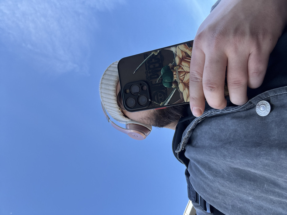 - "An upward-angled photograph captured in Caen, France, shows a partially visible individual holding a smartphone outdoors under a clear blue sky" by FM-i0fjc2, licensed under CC BY 4.0
