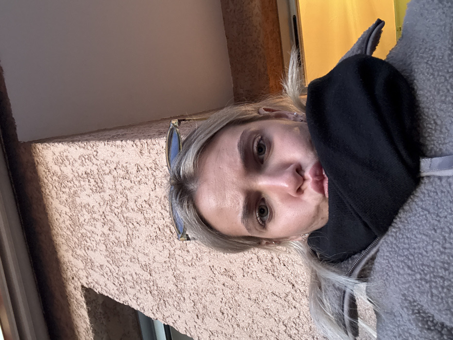- "An individual with blonde hair, wearing sunglasses on their head, is depicted in a low-angle selfie, prominently filling the lower half of the frame" by FM-ohidB3, licensed under CC BY 4.0