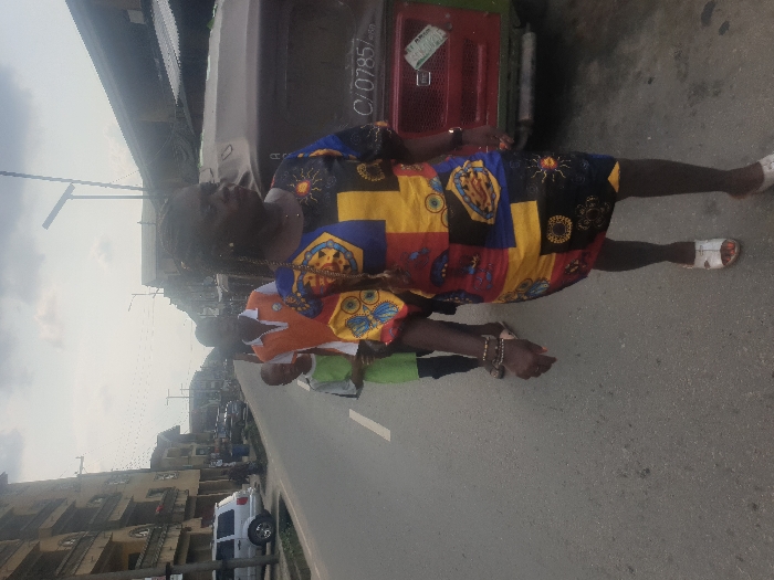 An urban street scene in Aba, Abia, Nigeria, is depicted under an overcast sky