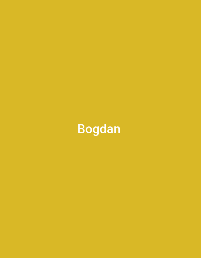 A mustard-yellow background features the word "Bogdan" in white, centered both horizontally and vertically