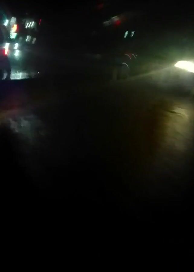 The video was recorded at night, showing a street with cars passing by
