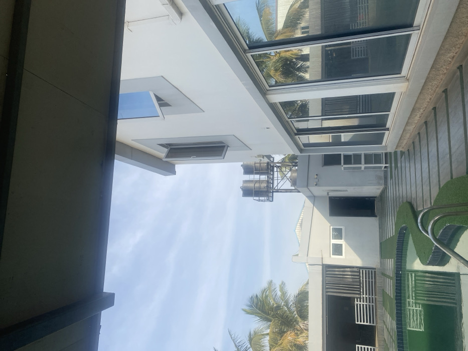 This image, captured in Lafia, Nigeria, depicts an outdoor scene featuring modern architecture and a recreational area under clear daylight