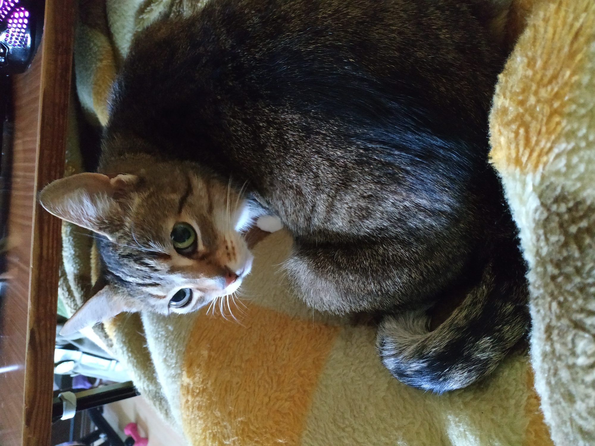 - "A domestic cat is observed curled on a patterned fleece blanket within an indoor environment in Dortmund, Germany" by FM-ngHTo1, licensed under CC BY 4.0