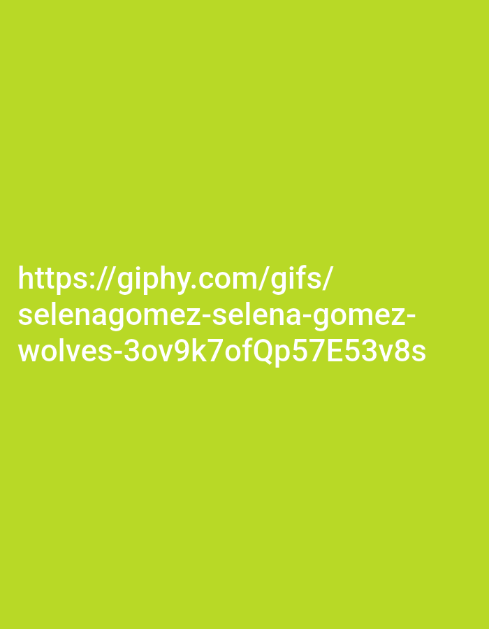 The image displays a solid, uniform lime green background. Centered in the lower-middle portion of the frame is white, sans-serif text forming a URL. The text reads: "https://giphy.com/gifs/selenagomez-selena-gomez-wolves-3ov9k7ofQp57E53v8s". No people, subjects, objects, or actions are depicted directly within this image. The environment is entirely a digital color field. There are no identifiable visual cues or elements within the image to suggest a specific physical location in the city of Denver, United States, or any other geographical area.