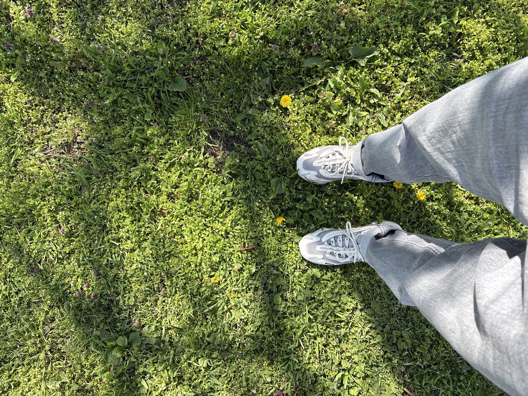 - "A high-angle shot depicts a patch of green grass interspersed with small yellow flowers, likely dandelions" by FM-2RVs73, licensed under CC BY 4.0